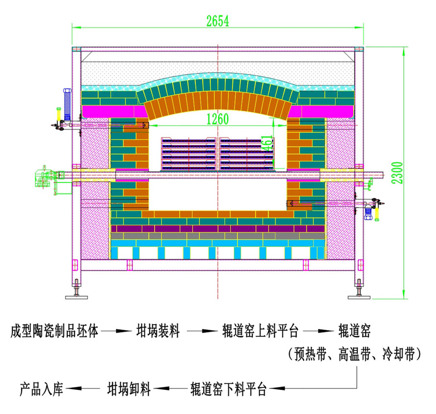 燒結(jié)陶瓷輥道窯工藝流程圖